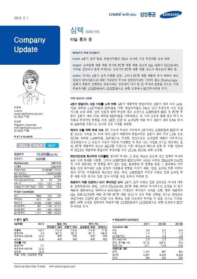 4Q12, 1Q13을 바닥으로 점진적 실적 개선 전망 - 교보증권