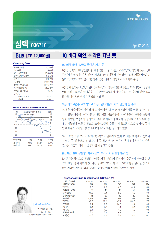1Q 바닥 확인, 최악은 지난 듯 - 교보증권