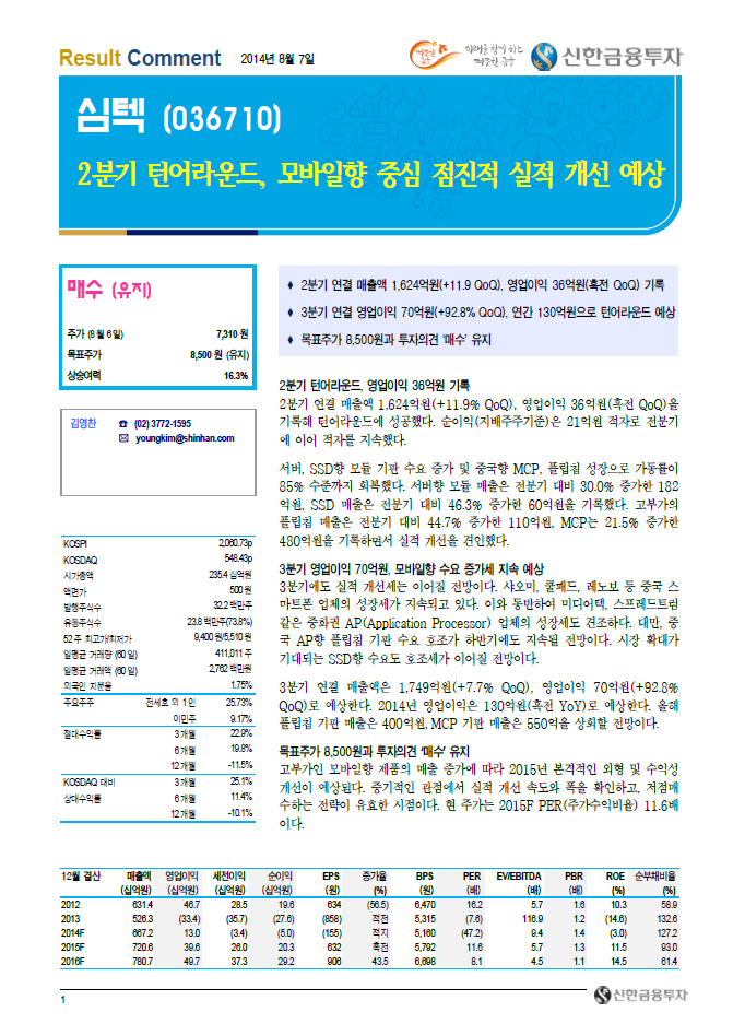 2분기 턴어라운드, 모바일향 중심 점진적 실적 개선 예상 -신한금융투자