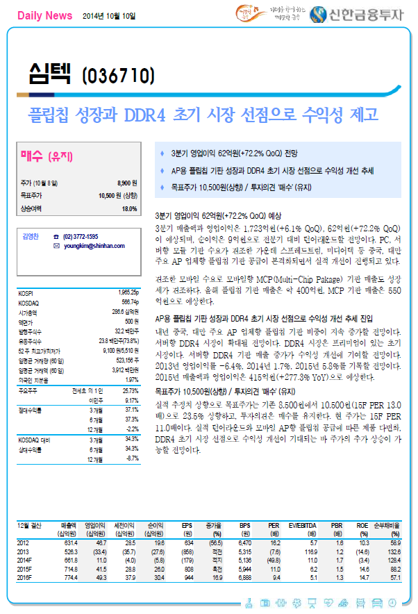 플립칩 성장과 DDR4 초기 시장 선점으로 수익성 제고 - 신한금융투자